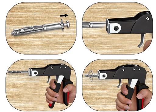 Zaciskarka do kołków typu molly to narzędzie przeznaczone do szybkiego, powtarzalnego zaciskania kołków montowanych w płytach gipsowo kartonowych lub materiałach z pustą przestrzenią. Możemy za ich pomocą przytwierdzać do płyt gipsowo kartonowych lekkie elementy np. wieszaki, obrazy, półki, kinkiety itp. Używanie zaciskarki eliminuje czasochłonną pracę wkrętakiem, perfekcyjnie zaciśnięcie kołka trwa kilka sekund.