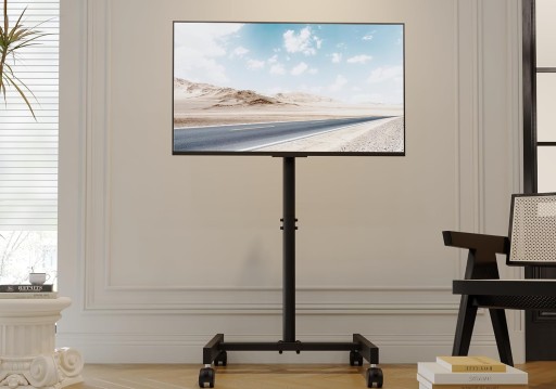 Oszczędność miejsca: Podstawka pod telewizor mobilna może być używana samodzielnie lub ustawiona za centrum rozrywki bez zajmowania dużej przestrzeni. Zaparkuj go przed małym biurkiem z klawiaturą i myszą, a telewizor może być Twoim miejscem pracy bez monitora zajmującego miejsce na biurku. Poza tym możesz zwinąć go nawet na 17,5 cm od ściany, oszczędzając dużo miejsca.