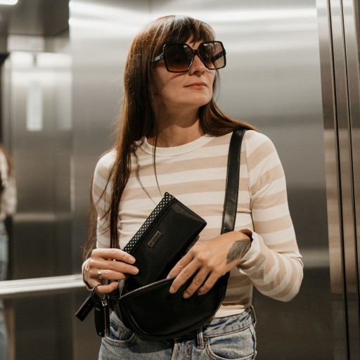 Mały organizer do torebki w czarnym kolorze, ozdobiony dużymi białymi kropami, to idealne rozwiązanie dla kobiet ceniących porządek i styl. Wnętrze kosmetyczki wykończone jest wyrazistą, czerwoną podszewką, która nie tylko nadaje jej elegancji, ale również ułatwia szybkie odnalezienie drobnych przedmiotów. Dzięki kompaktowym rozmiarom zmieści się w każdej torebce, a jednocześnie pomieści najpotrzebniejsze kosmetyki i akcesoria. Wysokiej jakości materiały gwarantują trwałość i wygodę użytkowania na co dzień.