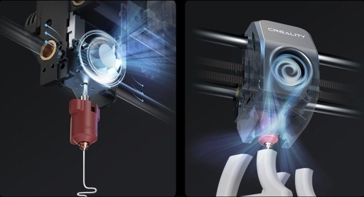 Głowica drukująca K1 posiada mocny wentylator promieniowy, który zapewnia dwustronne chłodzenie komponentów, a tym samym chłodzi świeżo wydrukowane warstwy bezpośrednio z dwóch stron. Wentylator obudowy o mocy 18 W dodatkowo zwiększa efekt chłodzenia.