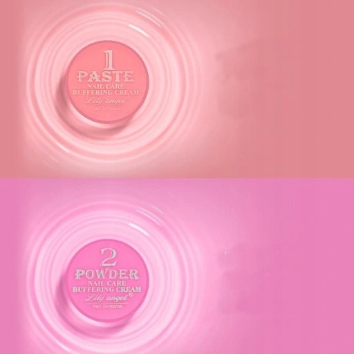 - Aby zabezpieczyć składniki zawarte w paście i pozwolić im wnikać w płytkę paznokcia nanieś niewielką ilość pudru z różowego pojemnika na różową polerkę i postępuj jak w punkcie 3.