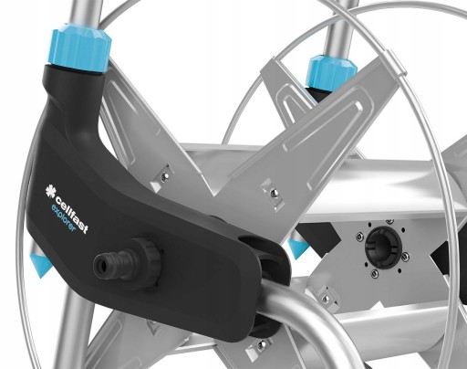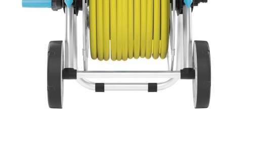 Wykonany z wysokiej jakości stali i aluminium. Kształt bębna ułatwia nawijanie węża i zapobiega jego załamywaniu się. Funkcjonalna składana korbka o ergonomicznym kształcie. Szeroki rozstaw kół zapewnia łatwe i stabilne prowadzenie. Konstrukcja wózka umożliwia wygodne przewożenie i przechowywanie długich odcinków węża. Wbijane nóżki zapewniające stabilność wózka w trakcie rozwijania węża. Regulowana długość rączki. Wygodny, gumowany uchwyt rączki