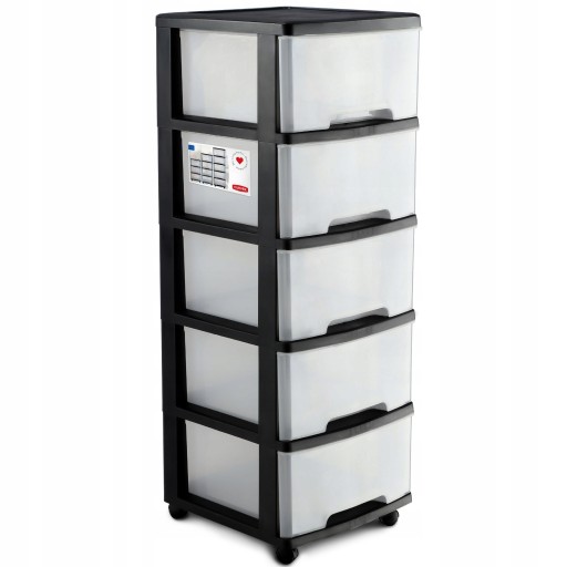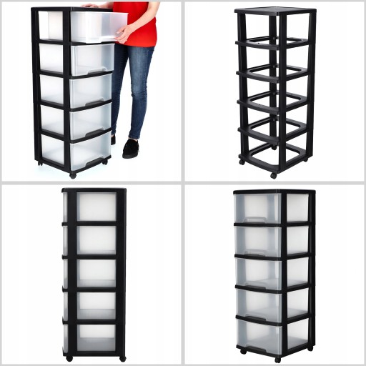 Mobilny regał z szufladami to rozwiązanie, które doskonale sprawdzi zarówno w domu, jak i w przestrzeni publicznej np. salony fryzjerskie, kosmetyczne itd. Dostępne są trzy wersje produktu z trzema, czterema lub pięcioma szufladami, w zależności od zapotrzebowania. Dwudziestolitrowe szuflady są przezroczyste, dzięki czemu zawartość szuflad jest widoczna. Podstawą konstrukcji jest stojak na kółkach, wykonany z wysokiej jakości tworzywa. Regał doskonale sprawdzi się w każdej przestrzeni, np. roli kontenera przy biurku, szafki łazienkowej, czy małej komody na dziecięce zabawki i ubranka. Jego nowoczesny design, oparty na prostocie formy sprawi, że idealnie będzie pasował do każdej aranżacji wnętrz.
