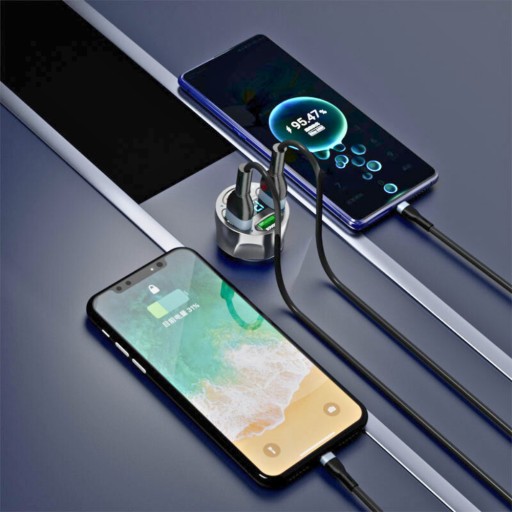 Szybka ładowarka samochodowa 66W wraz z uniwersalnym kablem 3w1 to idealne rozwiązanie dla osób, które potrzebują szybko i bezpiecznie naładować swoje urządzenia mobilne.