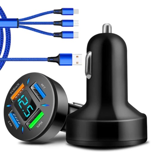 SZYBKA ŁADOWARKA SAMOCHODOWA 4xUSB 7A 3xQC MOCNA 66W + SZYBKI KABEL 3W1