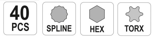 ZESTAW BITÓW IMBUS, TORX, SPLINE 40 ELEMENTÓW W PLASTIKOWEJ WALIZCE