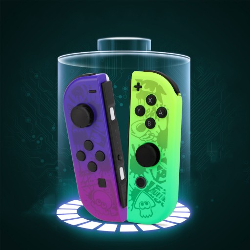 - Łatwy w użyciu, ciągłe zasilanie: kontroler jest sparowany w taki sam sposób, jak kontroler przełącznika, wystarczy podłączyć przełącznik konsoli Nintendo, aby korzystać bez sterownika. Lewy i prawy element sterujący mogą służyć jako sterowanie ogólne lub jako dwa niezależne elementy sterujące dla przełączników. Pojedynczy kontroler ma wbudowaną baterię litową 500 mAh, której czas ładowania wynosi 2–3 godziny i do 18 godzin użytkowania po pełnym naładowaniu za pośrednictwem konsoli przełączników lub stacji ładującej.