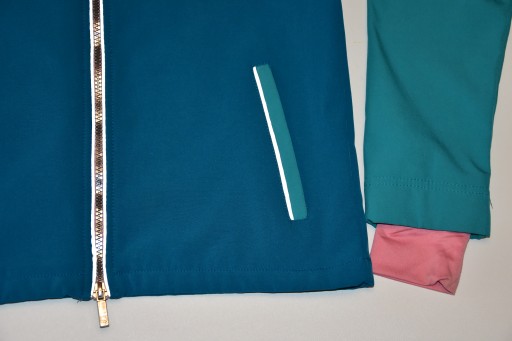 odblaskowe listwy wszyte przy zamku, kieszeniach i z tyłu
