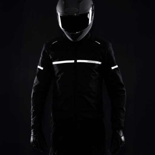 W kwestii bezpieczeństwa trzeba też wspomnieć o ważnej roli, jaką odgrywają liczne elementy odblaskowe z doskonale działającego materiału Reflective i które zwiększają widoczność motocyklisty po zmroku i w warunkach słabej widoczności.