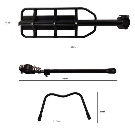 ✅Stelaż ma 55 cm długości i 14,5 cm szerokości, a sztyca siodełka ma 35 cm długości i 14,5 cm szerokości. Ten bagażnik wykonany jest z trwałego aluminium.