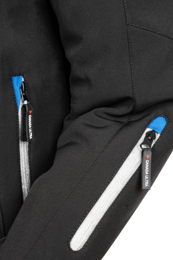 - Z przodu kieszenie zasuwane na wodoszczelny suwak.