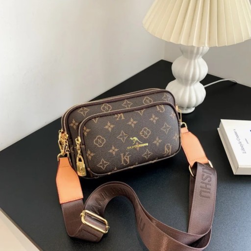 MINI TOREBKA SASZETKA DAMSKA CROSSBODY TORBA NA RAMIĘ POJEMNA BRĄZOWA WZÓR