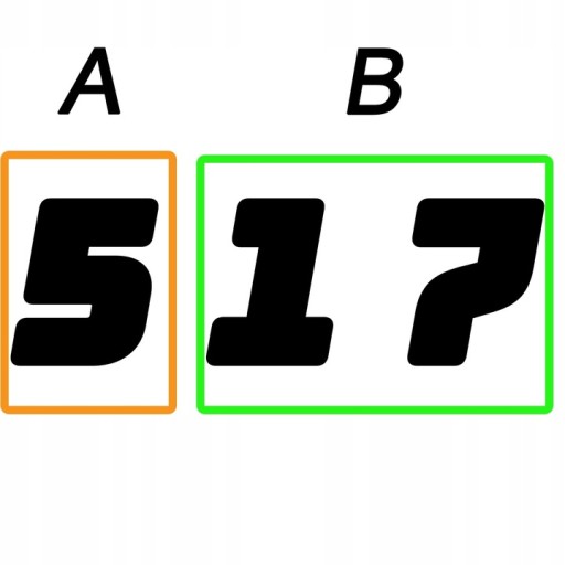 2️⃣ Dwie ostatnie cyfry (B) - wskazują wielkość otworu dyszy i gęstość farby. Im większa liczba, tym gęstsza farba. Przykładowo "517" to dysza o szerokości strumienia 25 cm i średnicy otworu dyszy 0,017 cala.