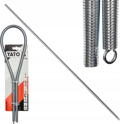 - Stożkowe zakończenie jednego końca sprężyny ułatwia wsunięcie jej do wnętrza rury. Natomiast hak na drugim końcu ułatwia wyciągnięcie jej z dłuższych odcinków rur.