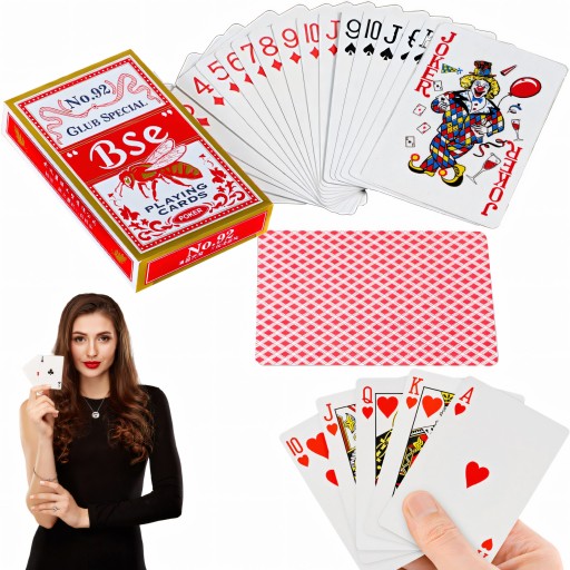 Zestaw 54 kart do gry idealnie sprawdzą się do wielu gier karcianych. Zestaw zawiera 54 kart (52 standardowe oraz 2 jokery).