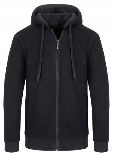 BLUZA MĘSKA OCIEPLANA Z FUTERKIEM MISIEM NA ZAMEK - CZARNA - XL