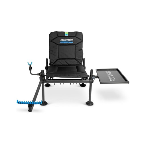 Preston Ignition Feeder Chair Combo to gotowe stanowisko wędkarskie składające się z krzesła oraz podstawowych akcesoriów wędkarskich, takich jak tacka, ramię, fajka czy podpórki.