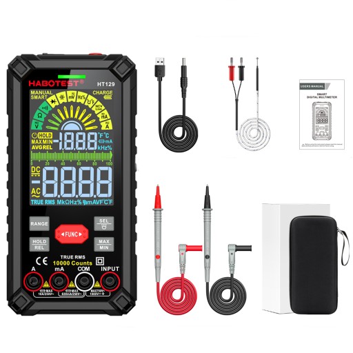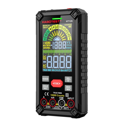Ten miernik jest inteligentnym multimetrem cyfrowym True RMS. Posiada inteligentną i profesjonalną funkcję pomiarową. Pełna funkcja, z wyświetlaczem biegów, wielokrotnym wyświetlaczem paska analogowego.