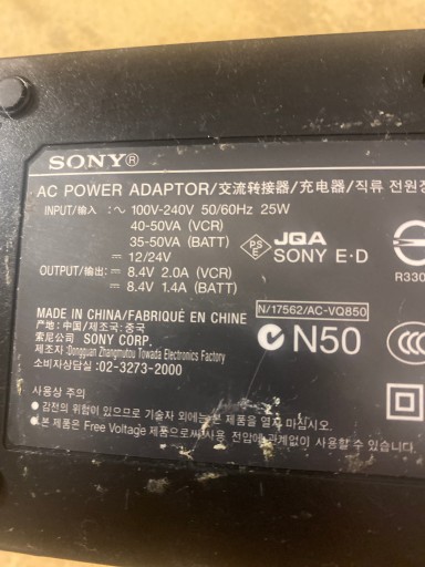 SONY AC ADAPTOR/CHARGER AC-VQ850
