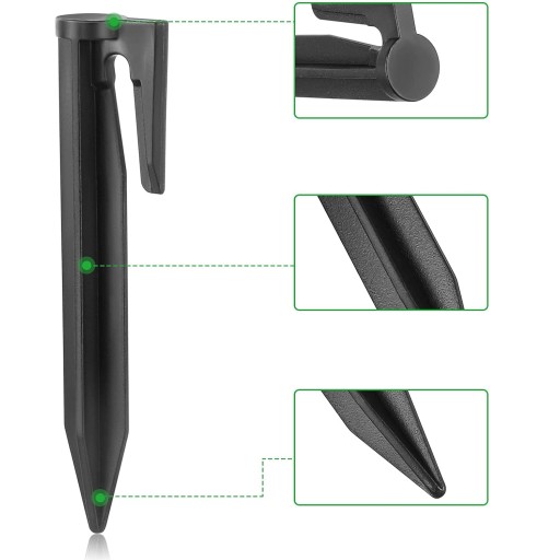 🌱 STABILNA GŁÓWKA: Główka kołka uziemiającego jest tak stabilna, że nie może się złamać, nawet jeśli przewody są bardzo napięte. Kołki wykonane są z bardzo stabilnego tworzywa sztucznego.