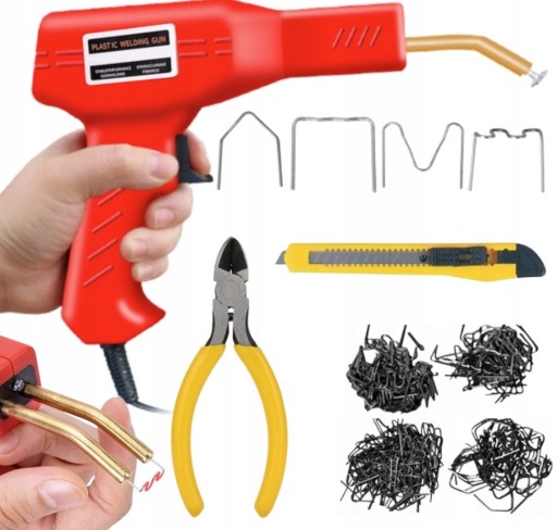 【Zawartość opakowania】 Otrzymasz 1 szt. Zgrzewarki z tworzywa sztucznego, 50 szt. płaskich zszywek, 50 szt. Zszywek narożnych zewnętrznych, 50 szt. Zszywek narożnych wewnętrznych, zszywek 50 szt., 1 szt. Szczypce ze stali węglowej i 1 szt. Instrukcja obsługi.
