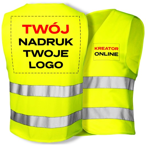 KAMIZELKA ODBLASKOWA Z NADRUKIEM NAPISEM LOGO BHP DROGOWA KREATOR ONLINE