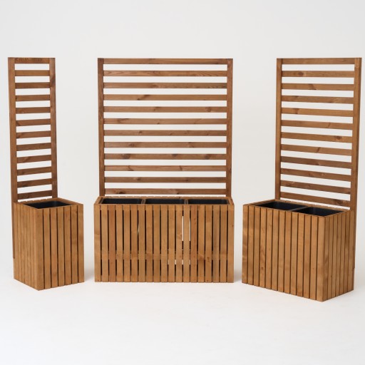 Nasze donice to pełna harmonia z naturą – wykonane z drewna sosnowego, metalowych wkrętów i zszywek stolarskich, a także plastikowego wkładu w 100% z recyklingu.