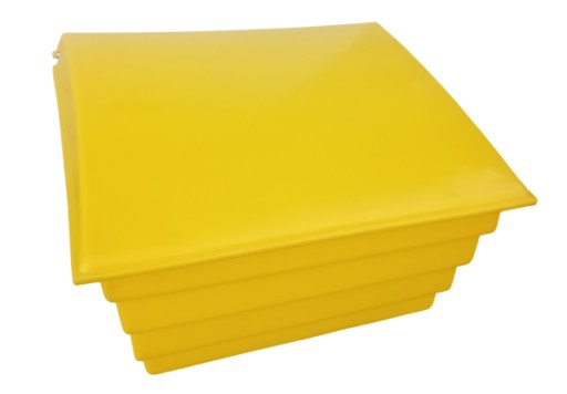 Wygodny w magazynowaniu, przystosowany do transportu za pomocą wózka widłowego. Specjalna konstrukcja zawiasów umożliwia podniesienie klapy do pozycji pionowej. Może być wyposażony w estetyczny zamek systemowy.