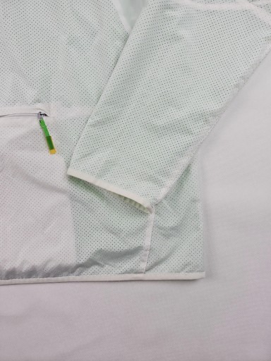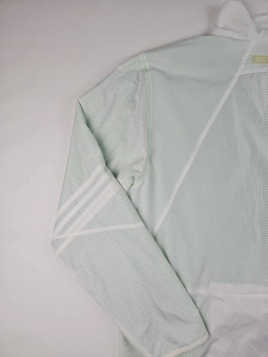 Adidas, kurtka wiatrówka biała, zielone dodatki, kieszonki, suwak, logo, siateczka, stan bardzo dobry, rozmiar XL.