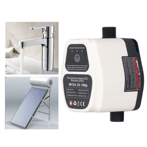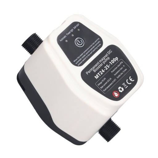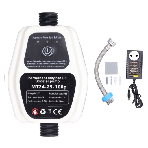 1. POMPA WZMACNIAJĄCA: Mini pompa podwyższająca ciśnienie 24 V DC, o mocy 100 W i maksymalnym natężeniu przepływu 25 l na minutę, skutecznie zwiększając ciśnienie wody w gospodarstwie domowym.