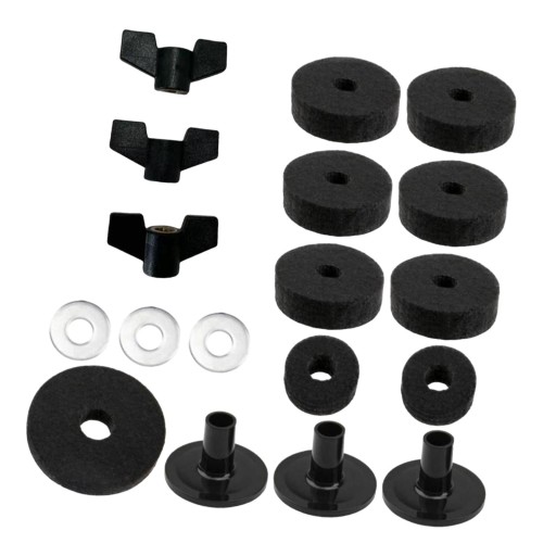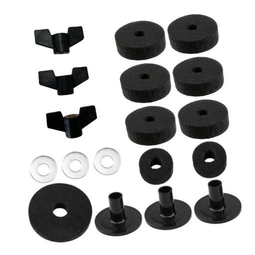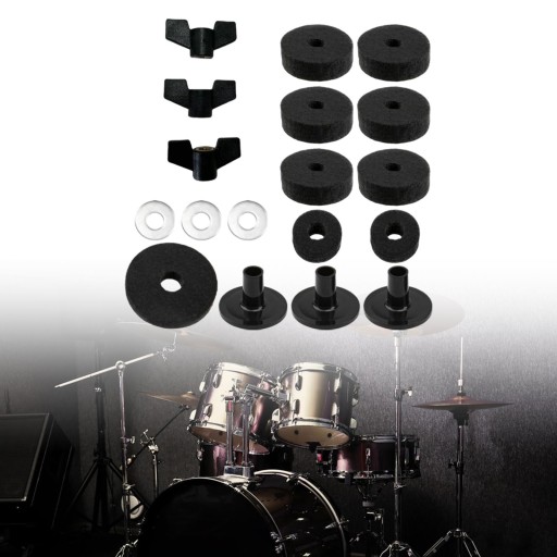[Uniwersalne]: Podkładki filcowe, tuleje i nakrętki o standardowych rozmiarach pasują do większości zestawów perkusyjnych.