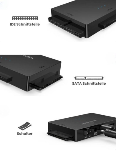 - Potrójne podłączenie: Obsługuje jednocześnie 1× SATA, 1× IDE 3.5" (40-pin), 1× IDE 2.5" (44-pin)