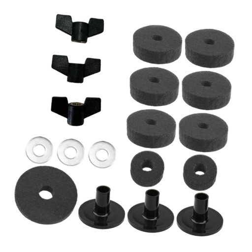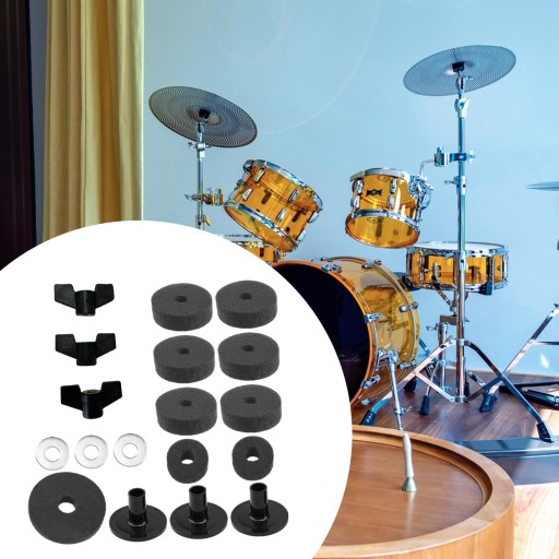[Uniwersalne]: Podkładki filcowe, tuleje i nakrętki o standardowych rozmiarach pasują do większości zestawów perkusyjnych.