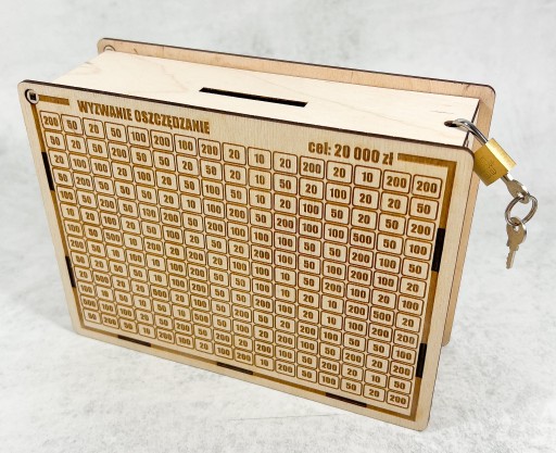 Podejmij wyzwanie zaoszczędzenia określonej kwoty pieniędzy z naszą skarbonką. Wykreślanie kolejnych wrzuconych kwot motywuje do dalszego zbierania.