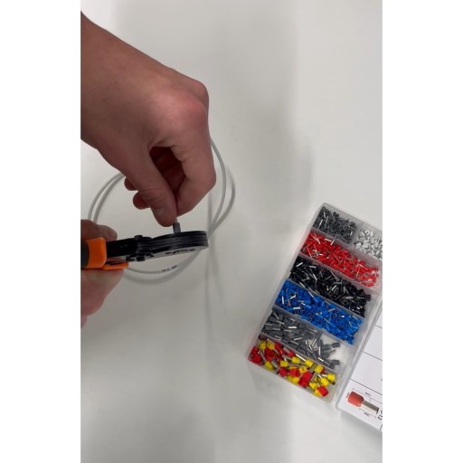 - Zdejmij izolacje i załóż tulejkę na przewód, następnie włóż go do praski.