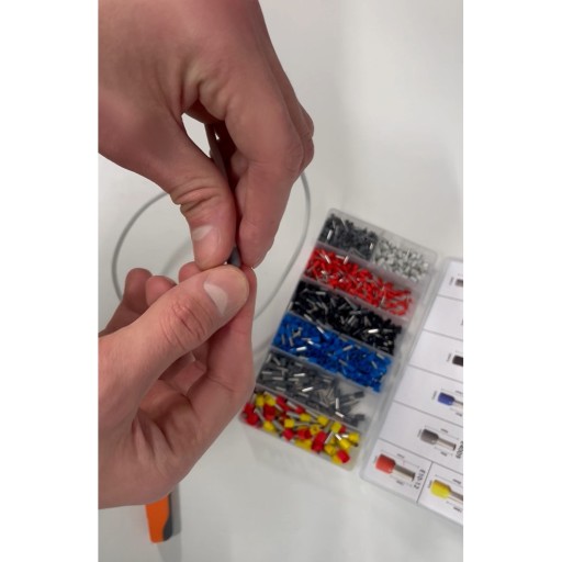 - ORGANIZER Z 8 ROZMIARAMI TULEJEK – w zestawie z zaciskarka jest przeźroczysty organizer mieszczący w sobie 8 różnych rozmiarów końcówek od zaciskania od 0,5 mm² do 10 mm². Każdy rozmiar jest w innym kolorze.