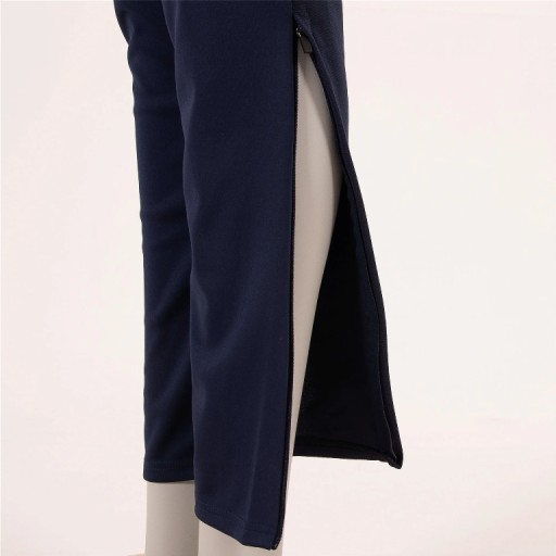 - nogawki mają długie zamki sięgające do kolan, dzięki czemu spodnie można łatwo zakładać w butach