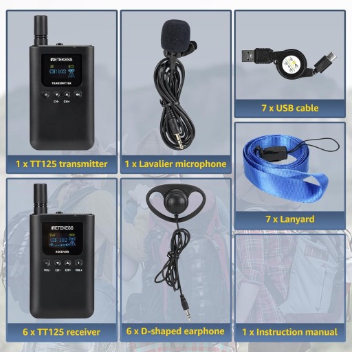 Retekess TT125 Guide System, набор экскурсоводов, 150 м, 2,4 ГБ, 3000 мАч