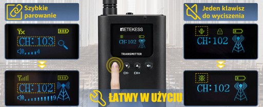 - Nadajnik TT125 ma wbudowany głośnik, co oznacza, że możesz transmitować głos za pomocą dołączonego mikrofonu.