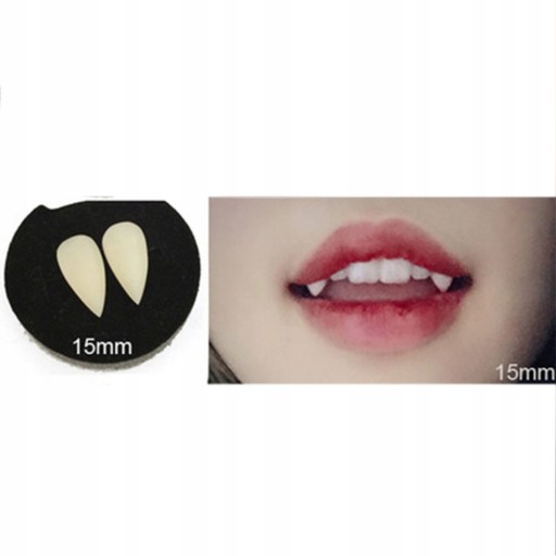 Każdy kieł jest podzielony na dwa zęby. Mogą pasować do kłów i/lub siekaczy lub dolnych zębów. Szybko, łatwo, wygodnie i całkowicie realistycznie. Nakładki na kły w naturalnym kolorze są błyszczące, sztywne i pięknie wyprofilowane, aby świetnie wyglądać w każdej jamie ustnej. Idealne figle na Halloween i żartobliwy prezent.