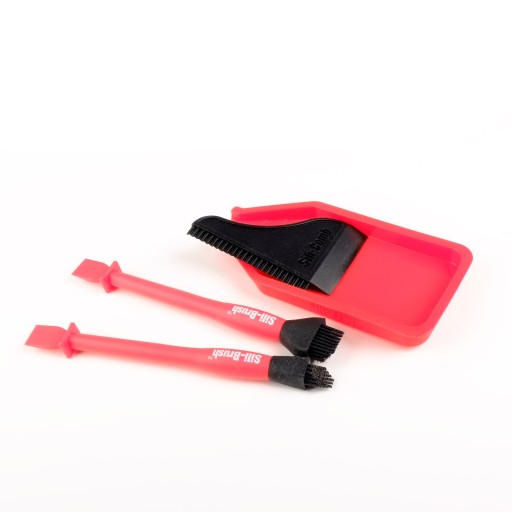 Silikonowy zestaw pozwala wygodnie i efektywnie nanosić klej na powierzchnie o różnym kształcie.