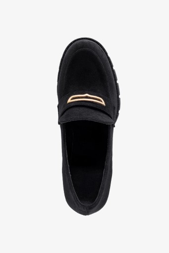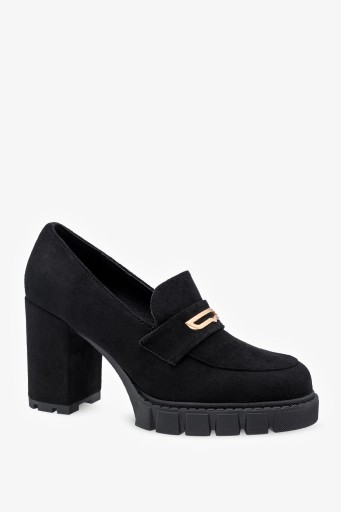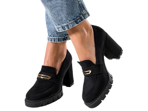 Czarne mokasyny damskie model MD7531-5 zostały wykonane z wysokogatunkowego zmszu ekologicznego co gwarantuje doskonałą jakość i dopasowanie do stopy. Ten fason to idealny wybór dla każdej eleganckiej kobiety, która ceni sobie zarówno styl, jak i komfort noszenia. Wyróżniają się na tle innych modeli, oferując nie tylko wyjątkowy design, ale również niezwykłą wygodę. Kluczowym elementem jest ich subtelna, lecz efektowna złota ozdoba na cholewce, która dodaje im niepowtarzalnego charakteru. Dzięki temu detalowi buty stają się idealnym uzupełnieniem zarówno codziennych, jak i bardziej formalnych stylizacji. Elegancki wygląd mokasynów podkreśla także zaokrąglony nosek, który nadaje im delikatności i klasy. Komfort noszenia zapewnia miękka wkładka, która idealnie dopasowuje się do kształtu stopy, gwarantując wygodę przez cały dzień. To rozwiązanie jest szczególnie doceniane przez kobiety, które spędzają wiele godzin na nogach i potrzebują obuwia, które zapewni im wsparcie. Ten model to także wygoda użytkowania dzięki wsuwanemu fasonowi. Brak zapięć sprawia, że buty można szybko i łatwo założyć, co jest szczególnie praktyczne w codziennym użytkowaniu. Wysoki obcas słupek, pokryty zamszową skórą ekologiczną, zapewnia stabilność i elegancję, a bieżnikowana platforma gwarantuje doskonałą przyczepność, co zwiększa bezpieczeństwo noszenia na różnych powierzchniach. Czarne mokasyny to doskonały wybór dla każdej kobiety, która szuka stylowego i wygodnego obuwia na różne okazje. Złota ozdoba na cholewce, zaokrąglony nosek, miękka wkładka to cechy, które sprawiają, że te buty są nie tylko piękne, ale również funkcjonalne. Wybierz je, aby cieszyć się niepowtarzalnym stylem i komfortem każdego dnia.