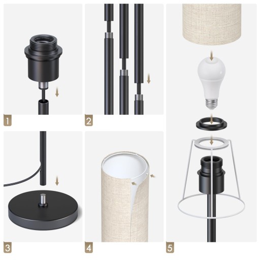 - Ta tekstylna lampa podłogowa jest łatwa w montażu i można ją zmontować w zaledwie 5 minut.