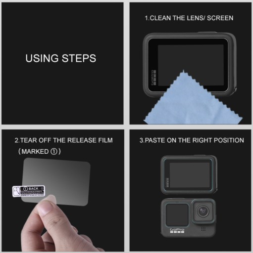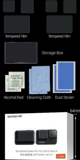 6X SZKŁO HARTOWANE SUNNYLIFE NA EKRAN I OBIEKTYW DO GOPRO HERO 9 / 10 /11 / 12