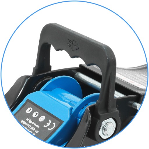 ✔️ Ergonomiczna rączka transportowa wykonana z wysokiej jakości tworzywa osadzona została na okrągłych prowadnicach, a nie jak w większości konkurencyjnych podnośników nabita na śruby.