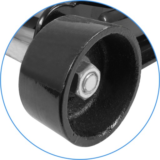 ✔️ Wytrzymałe koła skrętne z tyłu, umożliwiające swobodne manewrowanie podnośnikiem oraz podjazd w dowolne miejsce pod auto.