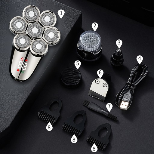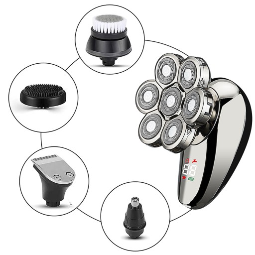 Zestaw do pielęgnacji 5 w 1 Męskie Bezprzewodowa golarka LED do łysiny Golarka elektryczna z 7 głowicami Maszynka do strzyżenia włosów na mokro i na sucho Trymer do włosów w nosie i ciele Oczyszczanie twarzy / masaż