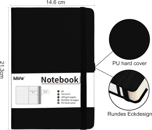 Mlife A5 to notatnik, który zapewnia mnóstwo miejsca do pisania dzięki 360 ponumerowanym stron. Jego kompaktowe wymiary 21,3 x 14,6 x 3 cm sprawiają, że jest idealny do użytku w biurze, szkole czy w domu. Dostępny w czarnym eleganckim kolorze, pasuje do różnych stylów i potrzeb.