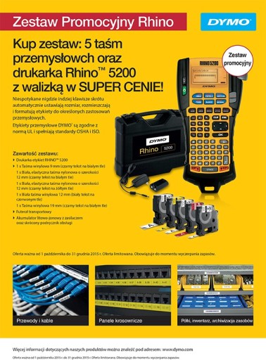 DRUKARKA ETYKIET RHINO 5200 + 5 TAŚM PRZEMYSŁOWYCH, WALIZKA DYMO