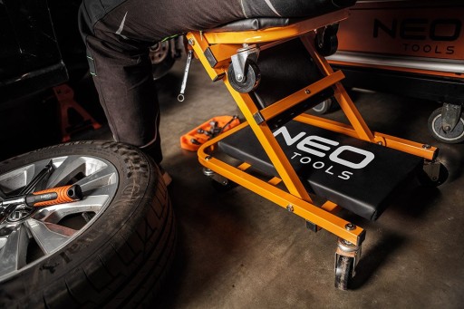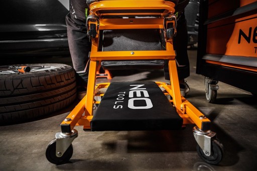 ⚙️ Wielozadaniowa leżanka warsztatowa 2 w 1 marki NEO to niezastąpione akcesorium dla warsztatu, które umożliwia wygodne wykonywanie prac zarówno pod pojazdem, jak i w pozycji siedzącej po przekształceniu leżanki w stołek.